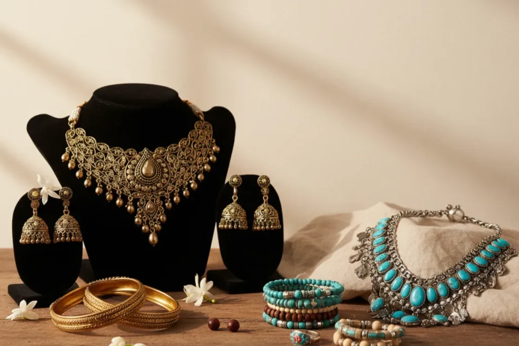 Our jewellery blends tradition and modern trends, featuring delicate daily wear and bold statement pieces, handcrafted to enhance elegance and complete every look.